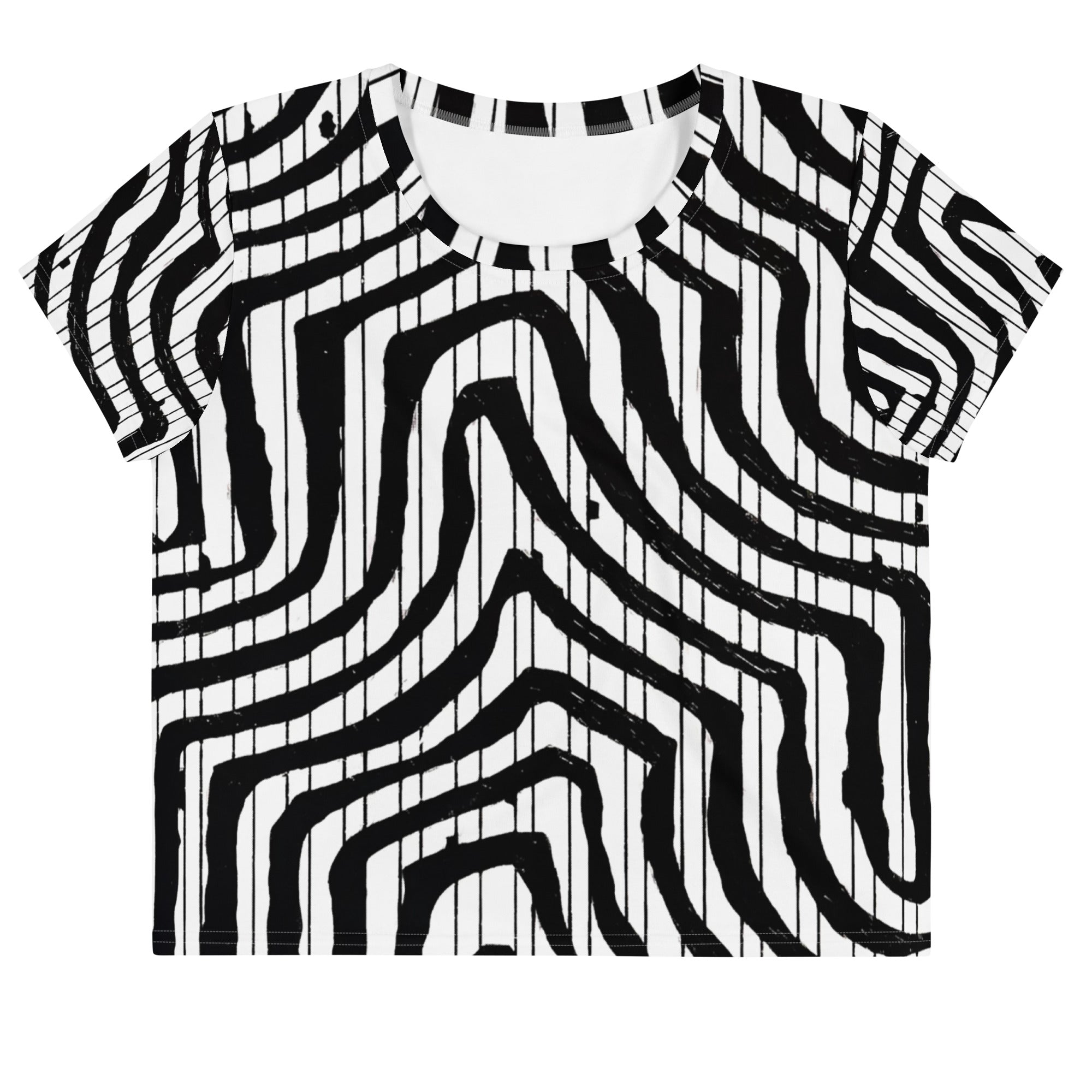 Flow with ease in the Flow Crop Tee in black and white. Perfect for any adventure. Get yours now! 🌊